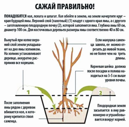 - Les semis avec un système racinaire ouvert sont plantés sur une colline en terre, répartis uniformément autour des racines. Un pommier dans un coma de terre est simplement placé dans un trou.